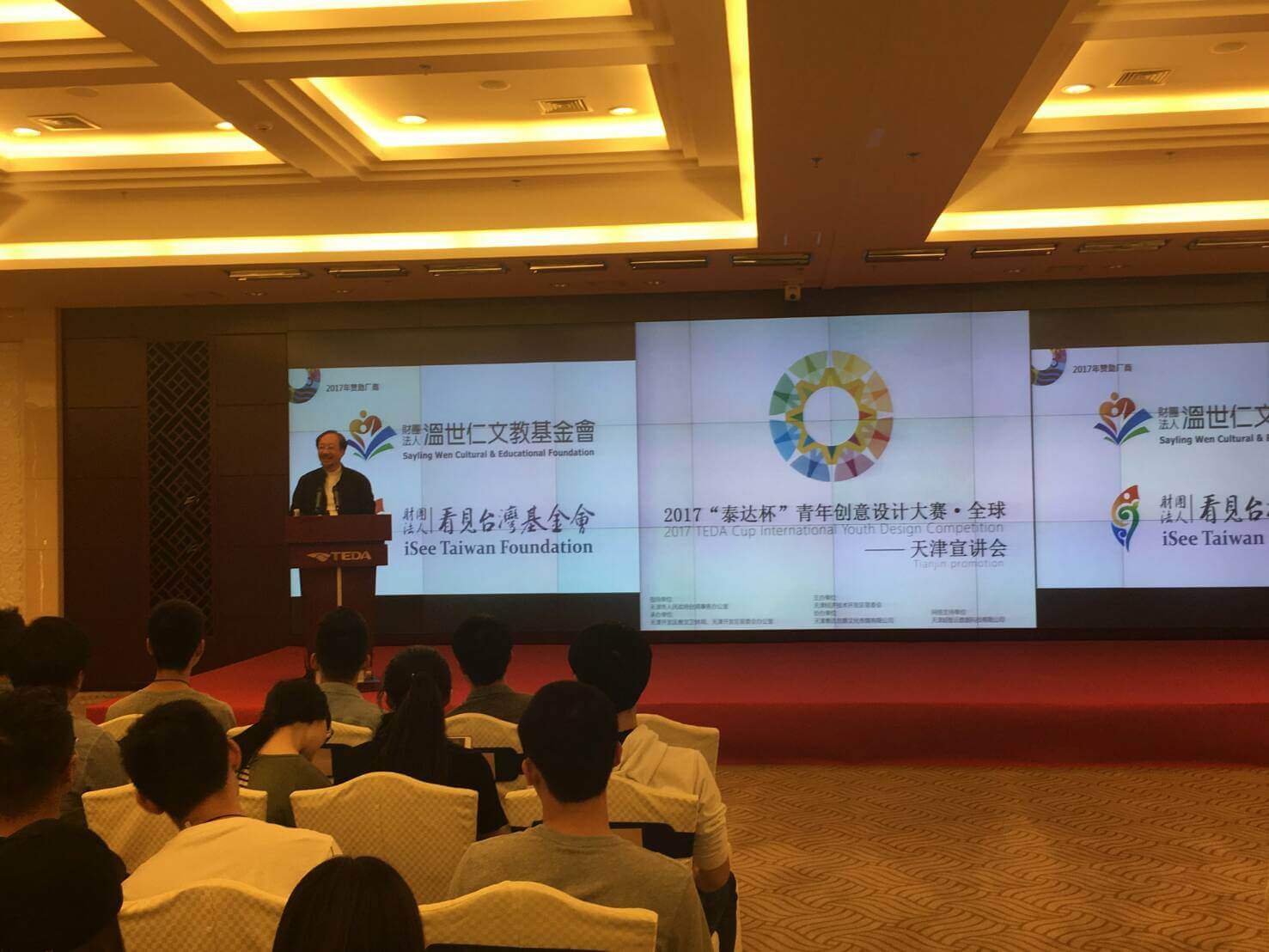 2017年4月27-28日計畫主持人林磐聳教授受邀至天津泰達杯全球青年設計大賽宣講會,有來自天津及河北近20個高校、200餘位師生前來聽講,並善用此機會順道推廣2017 TISDC臺灣國際學生創意設計大賽,提供年輕設計師們更多與國際接軌機會,期望藉助國際競賽的交流,增進學生設計專業與國際視野。