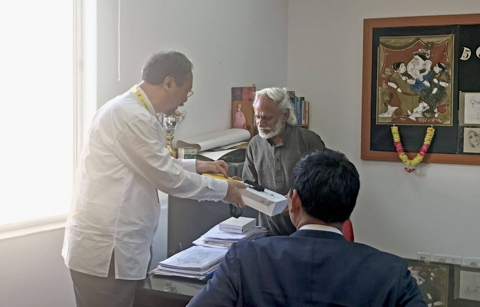 計畫主持人亞洲大學林磐聳講座教授致拜會DJ Academy of Design學院的創辦人Singanapalli Balaram先生。