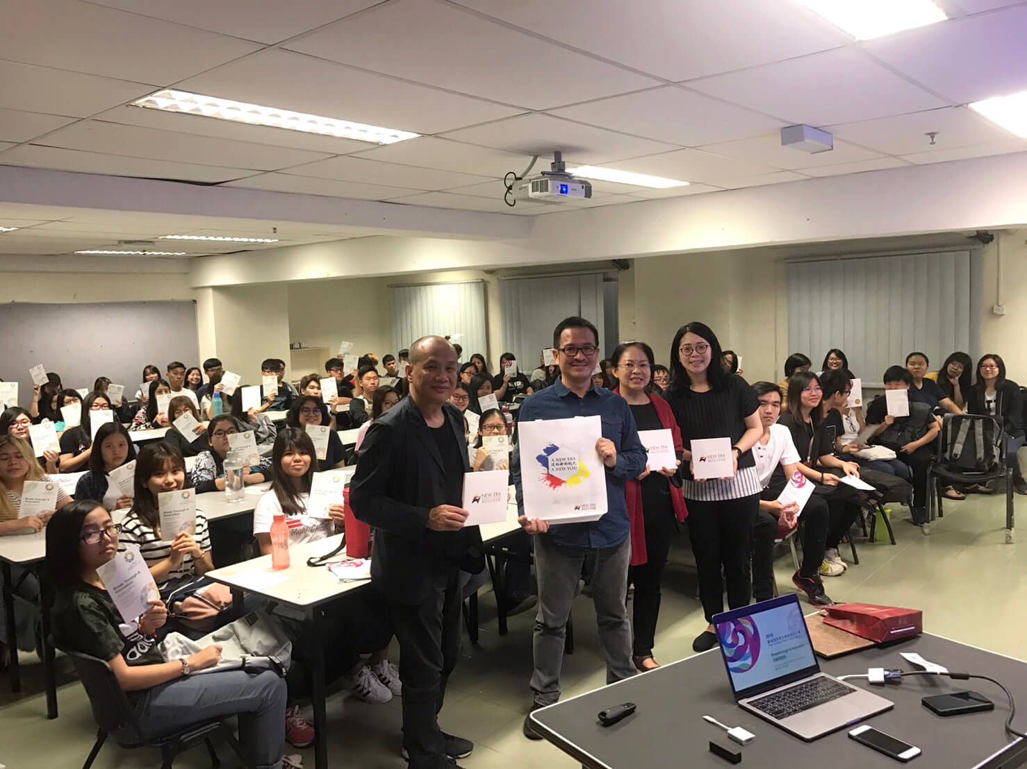 臺灣國際學生創意設計大賽協同計劃主持人游明龍教授、廖偉民教授、林孟潔講師及專案經理於2018年5月8日前往馬來西亞的New Era University College(新紀元大學學院)推廣本大賽。此次宣傳活動感謝該校的Hanna Chan主任協助與安排,在場約100名師生熱情參與。宣傳活動中游明龍教授以今年度大賽主題「Breakthrough and Innovation」為說明會主軸,內容針對競賽辦法詳細解說,以及歷屆作品進行分享,提高學生更多的參賽意願,更藉此激發學生創意發想。游明龍教授更呼籲學生累積自己的創作能量,期待同學們在設計領域上能勇於突破、樂於創新! 希冀今年大賽能夠邀集更多馬來西亞優秀設計學生共同參與。