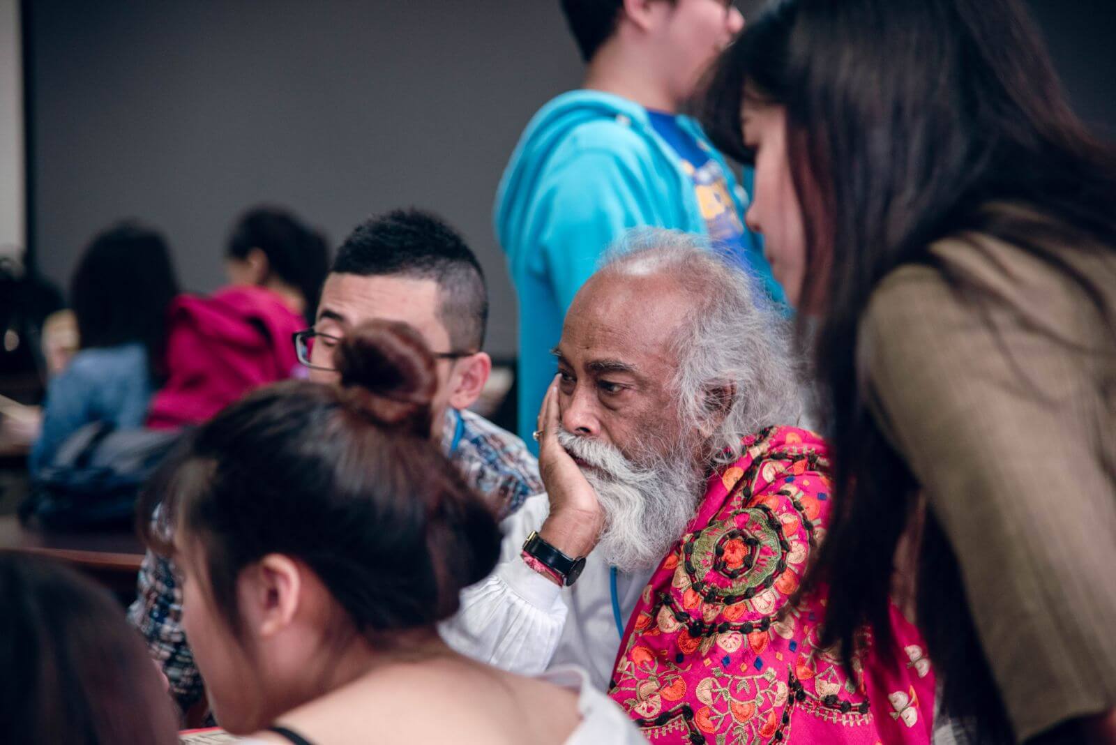 圖說:Subrata印度大師於新亞洲設計工作坊上課時與學員討論作品之情形