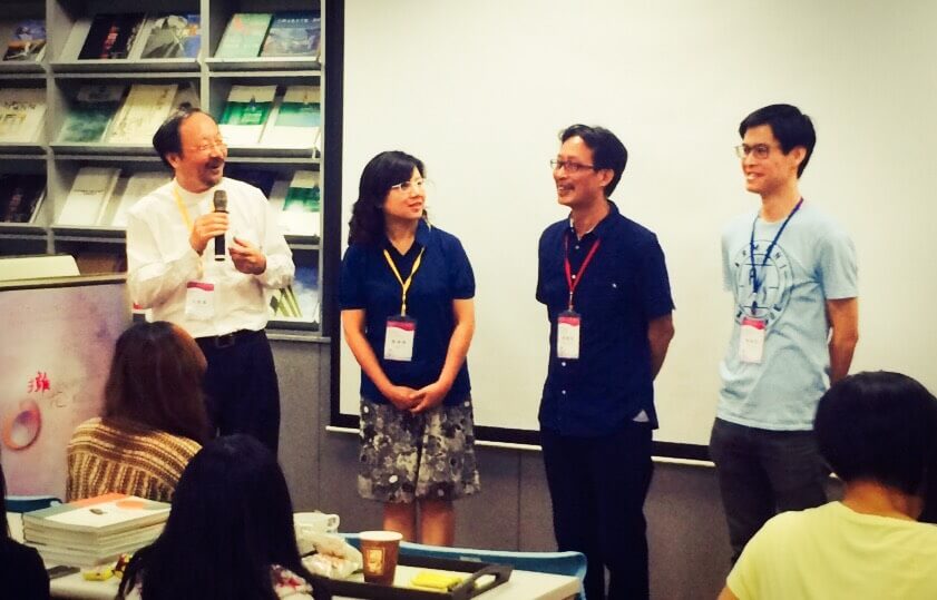圖說:計劃主持人林磐聳教授介紹來賓,由左至右:溫世仁文教基金會 傅佩娸資深經理、國立臺灣師範大學設計系 劉建成教授、國立臺灣科技大學建築系 陳彥廷助理教授