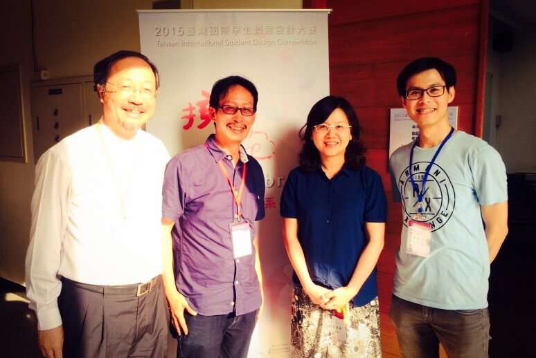 圖說:與臺灣國際學生創意設計大賽活動刊版合照(計劃主持人林磐聳教授、國立臺灣師範大學設計系 劉建成教授、溫世仁文教基金會 傅佩娸資深經理、國立臺灣科技大學建築系 陳彥廷助理教授)