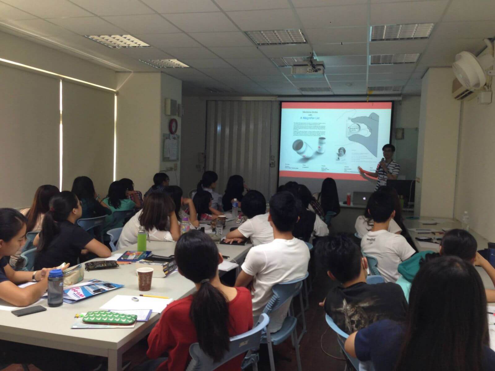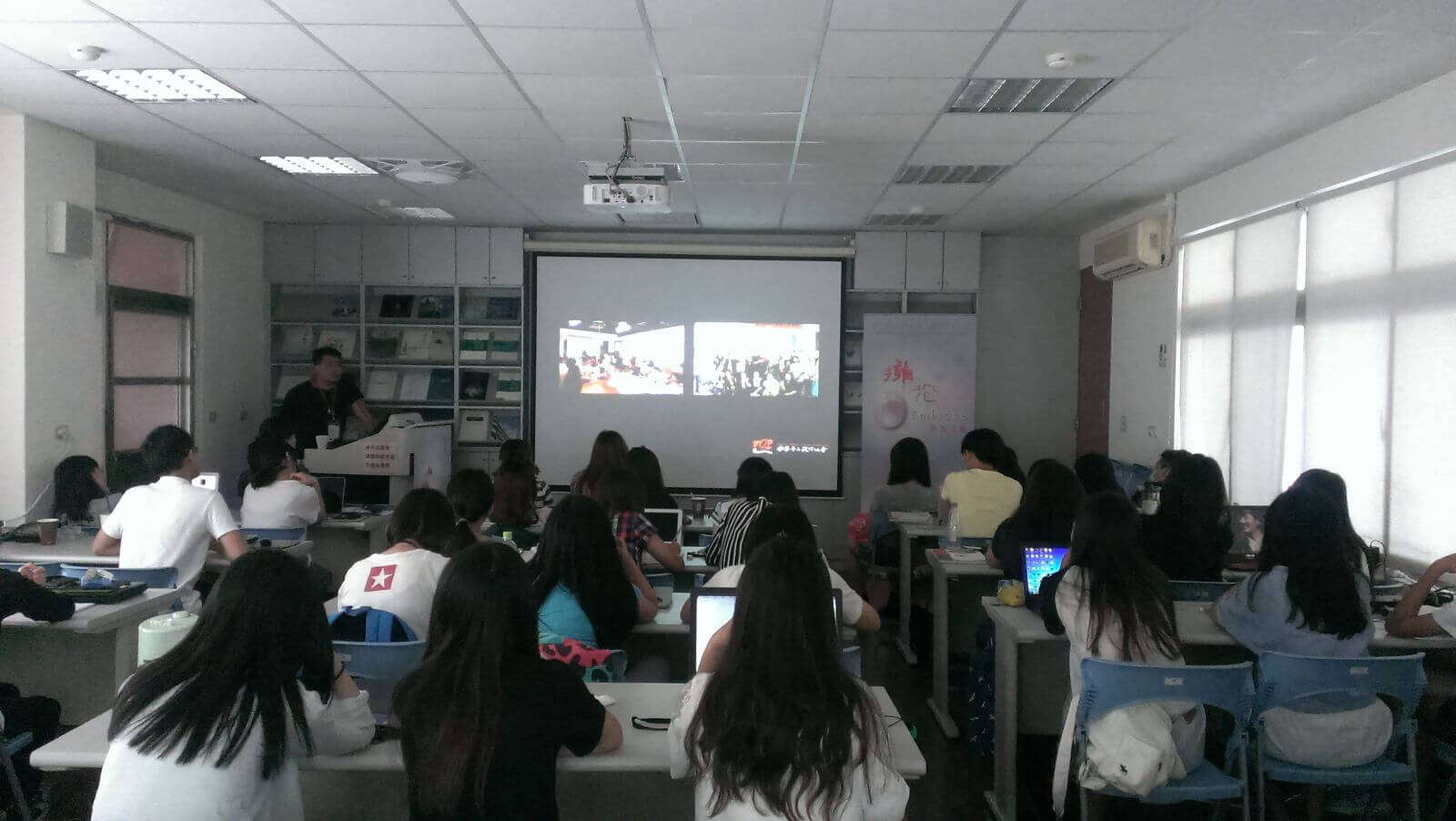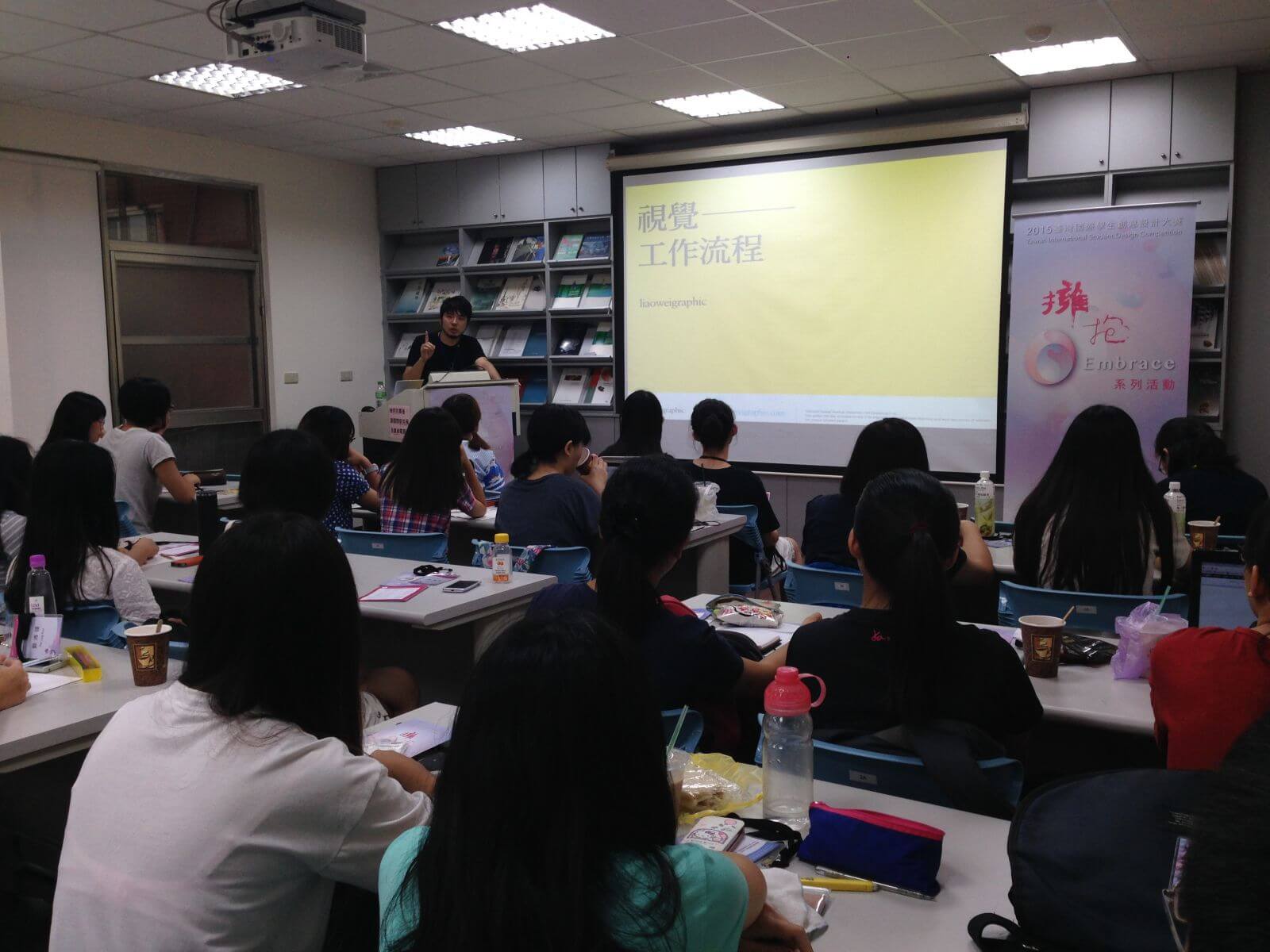 首先由看見臺灣基金會翁瑞祐專案經理向同學介紹基金會及廠商指定類之訴求,接著由楊佳璋老師(樺致形象設計有限公司創意總監)及廖韡老師(國立臺灣師範大學設計系講師)分別擔任工作坊第一天和第二天講師,與同學分享難得的設計實務、企劃、製作等流程。