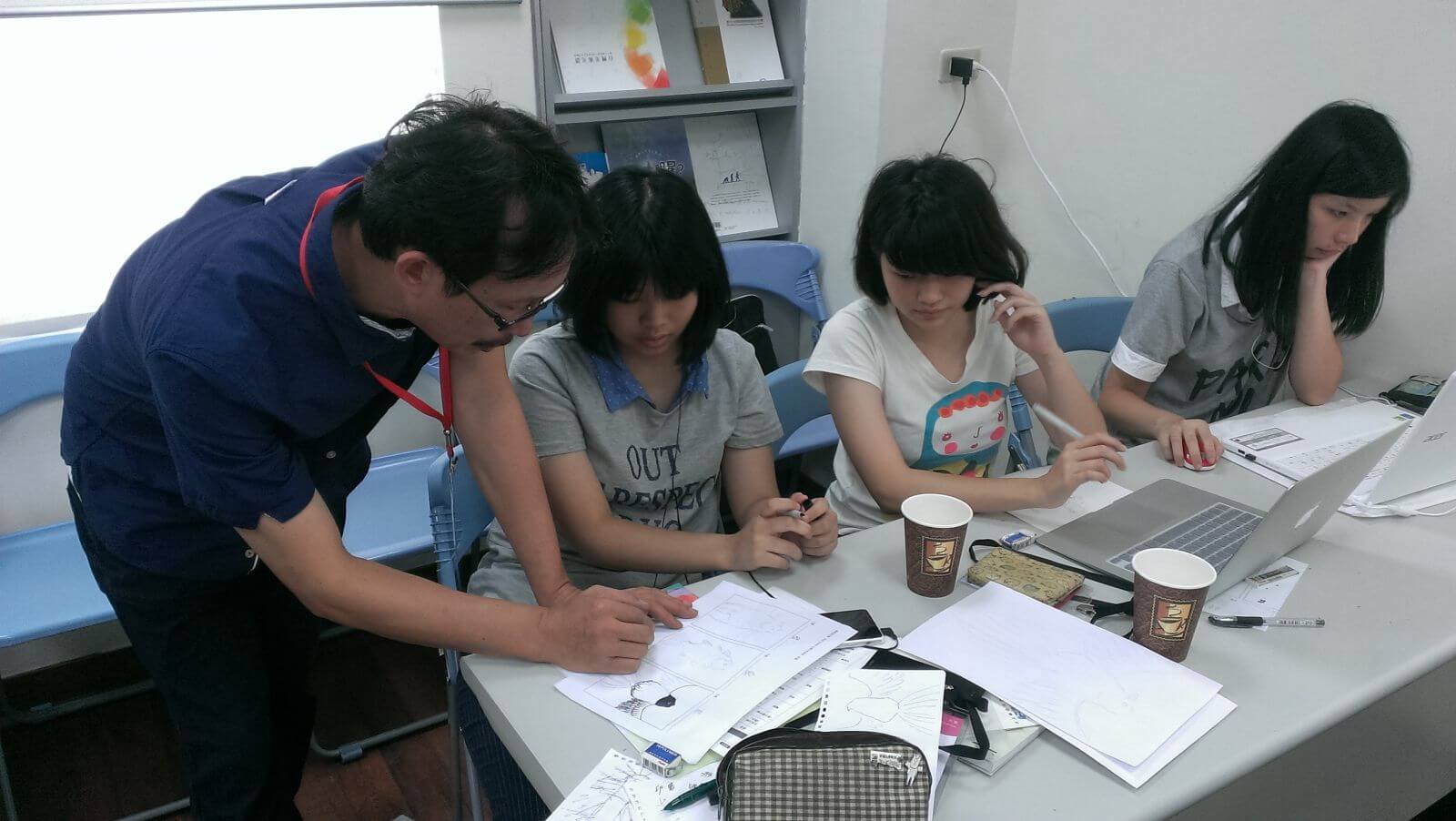 圖說:第二天繼續奮戰!陳彥廷老師教學生如何展示作品