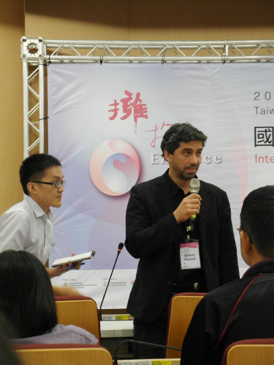 Prof. Shashank Mehta, the representative of India Design Council, was the opening speaker of the Taichung session. He described and shared about the source of design and concepts associated with Indian daily living. The subject matter was easy to understand, and his narrative approach was also easy to understand. This allowed students to easily understand the basics of design. The national treasurable master of Japan, Prof. Okamoto Shigeo, used his works as the subject of his lecture. The content was rich, and his speaking style was humorous and lively. He led the students into his own realm of creation. Students also came to realize that excellent works would never be eliminated by the change of eras. Next, although the mother tongue of the representative of the Brno Biennale Association in the Czech Republic, Prof. Andrej Hascak, is Slovak, he put a lot of effort in delivering his speech. He also shared with the teachers of his precious experience he had with his students. His interactions with the participated teachers and students were full of enthusiasm. The grand finale was the CEO of an animation company from South Africa, Mr. Stuart Forrest, who discussed the process and difficulties of animation production from the commercial and noncommercial perspectives. He offered the students a kind of thinking that was different from the kind learned from the