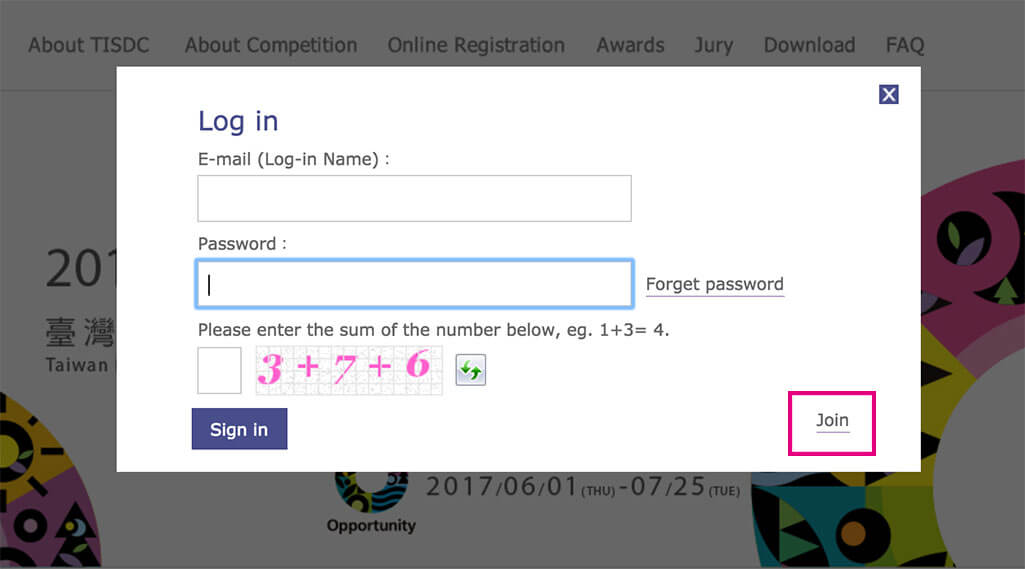 Step1: Click Online Registration Tab or Sign up Tab to enter the page.