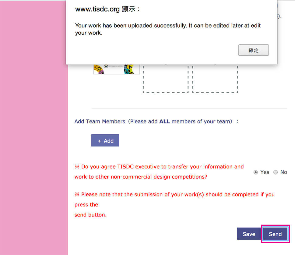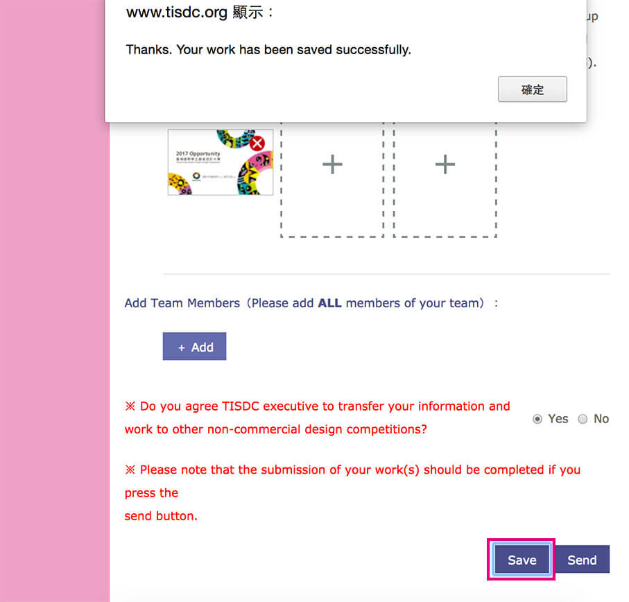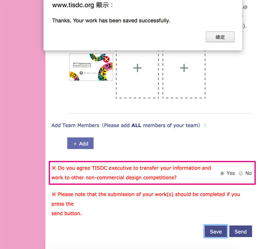Step6: After uploading completion, please check whether you agree TISDC to transfer your information and work to other non-commercial design competitions.