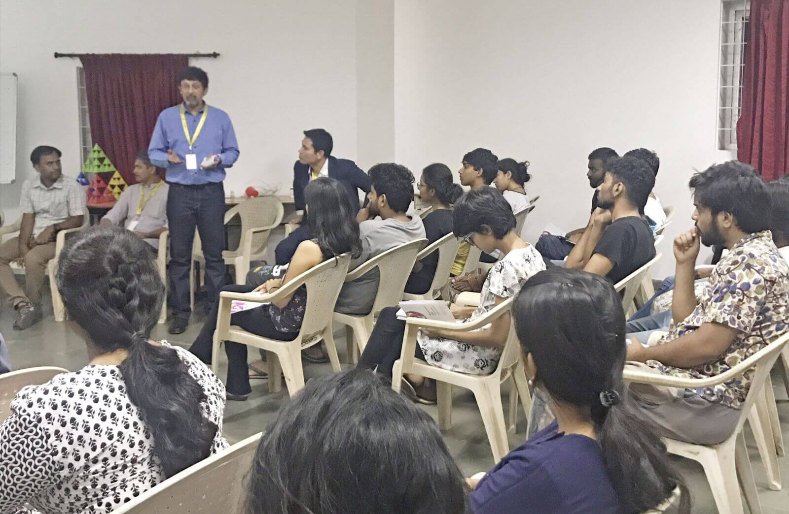 Brave to Break Through, Intent on Innovation The overseas publicity of the first stop of “2018 Taiwan International Student Design Competition” started! The Project Director of TISDC Taiwan International Student Design Competition & Chair Professor at Asia University, Pang Soong Lin and Shin-Fu Lee were leading the executive team to Coimbatore, India, for a 9-day publicity from February 28 to March 8. It is the first time that TISDC came to India since it was established in 2008! The overseas promotional activity started with presenting 2017 TISDC awarded works in India. With special thanks to Mr. Ashish Deshpande’s assistance, TISDC visited DJ Academy of Design in Coimbatore on March 1 to promote the exhibition and met the school Founder Dean Mr. Singanapalli Balaram. The executive team hoped to encourage Indian students to participate the competition and to invigorate different elements of creativity for designing art in India.