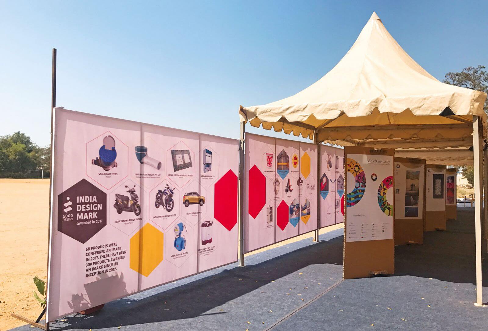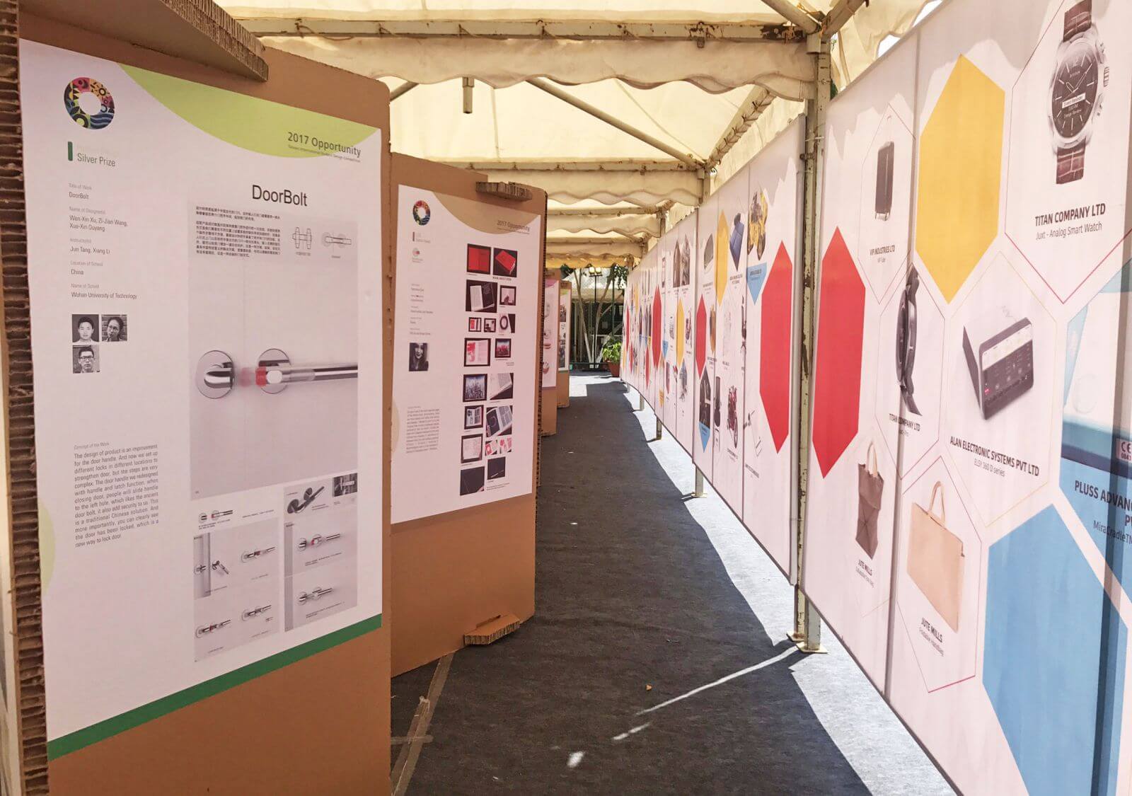 Caption: India Design Week exhibition displays 2017 TISDC winner works, which includes a total of four category: Visual Design, Product Design, Digital Animation and Brand Specified.