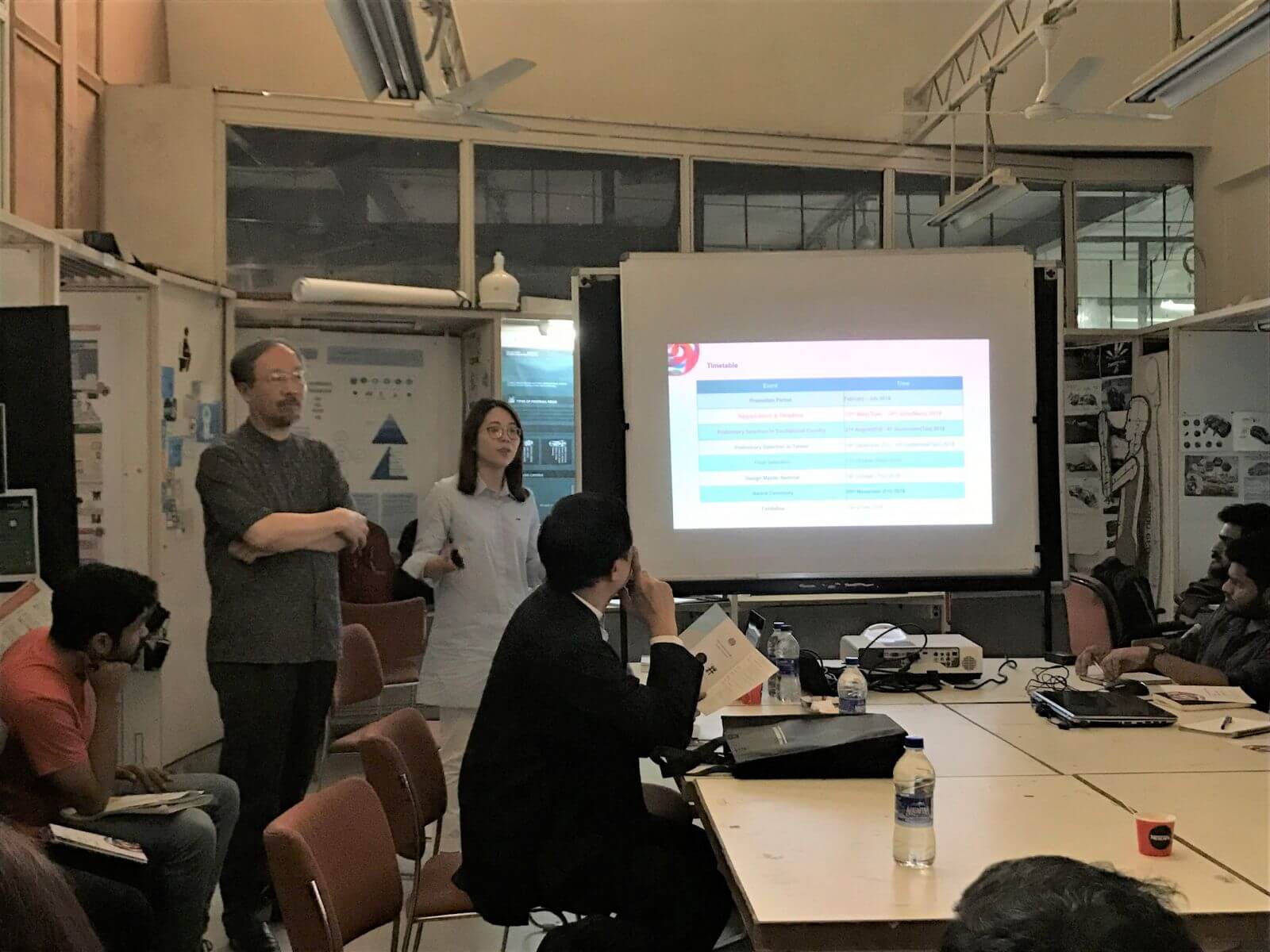 Caption: Project Director Pang Soong Lin and Associate Project Director Miira Lin briefing Caption:Project Director Pang Soong Lin, Associate Project Director Shin Fu Lee, and Associate Project Director Miira Lin at School of Planning and Architecture, Delhi.
