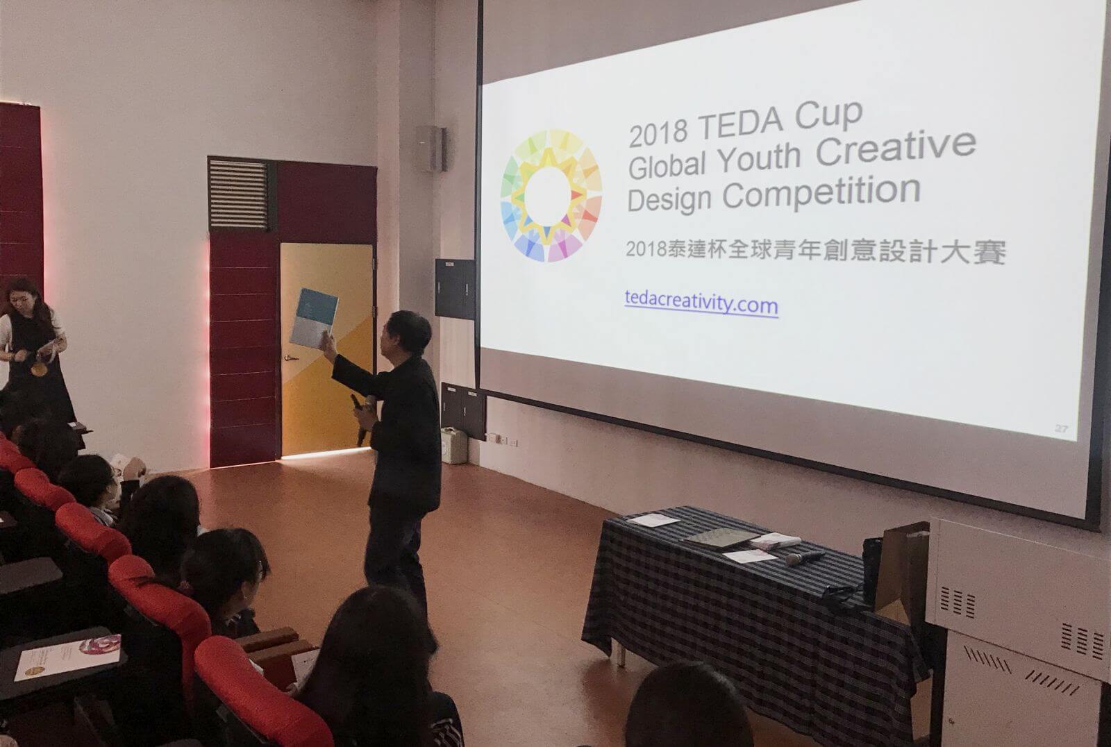 On 10th April, Tuesday, the associate project director of TISDC, Prof. Shin Fu Lee, was honored to go to Ta-Ming Senior High School to promote the theme "Breakthrough and Innovation" for 2018 TISDC. This event invited approximately 130 students to attend, and most of them were second-year students at Department of Advertisement. Prof. Shin Fu Lee shared his experience of directing students to participate in international competitions. The students were attracted to his speech and listened to him intently. Prof. Lee not only encouraged students to participate in the competition and compete for high prize money, he also boosted students to accumulate their creative energy in a solid manner by participating in international competitions. He hoped that one day, the students could be able to bravely break through and be creative! Special thanks to the Director of Advertisement Department, Mrs. Hong, for her assistance and arrangements for 2018 TISDC promotional tour at Ta-Ming Senior High School.