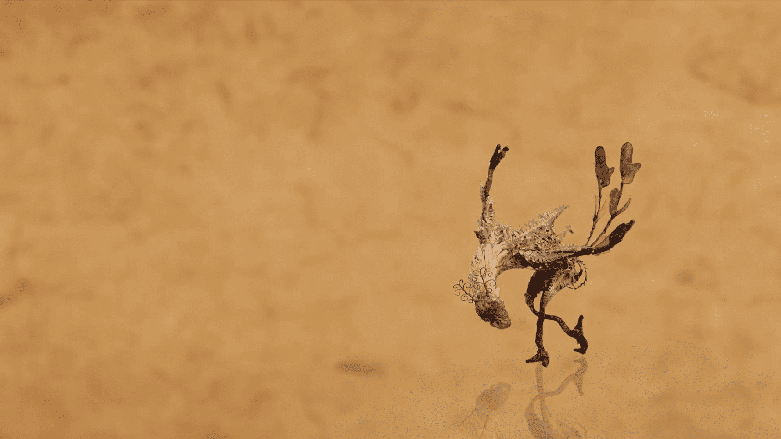 From emptiness, a gentle breeze stirs, gathering grasses and leaves to form a creature. Grass turns to feathers, leaves to body. As It catch sight of itself, the world echoes into being, stirred by the wind. Feeling others, It is felt in return, in a rhythm where all boundaries blur into a seamless dance of harmony…