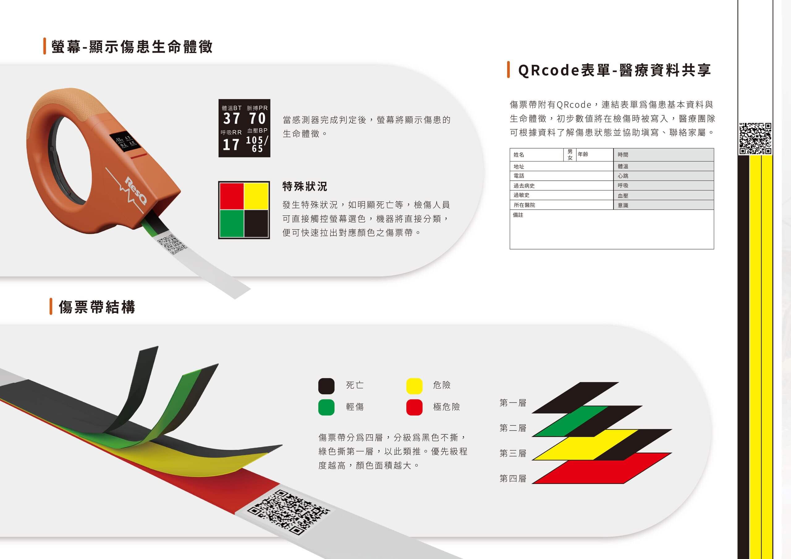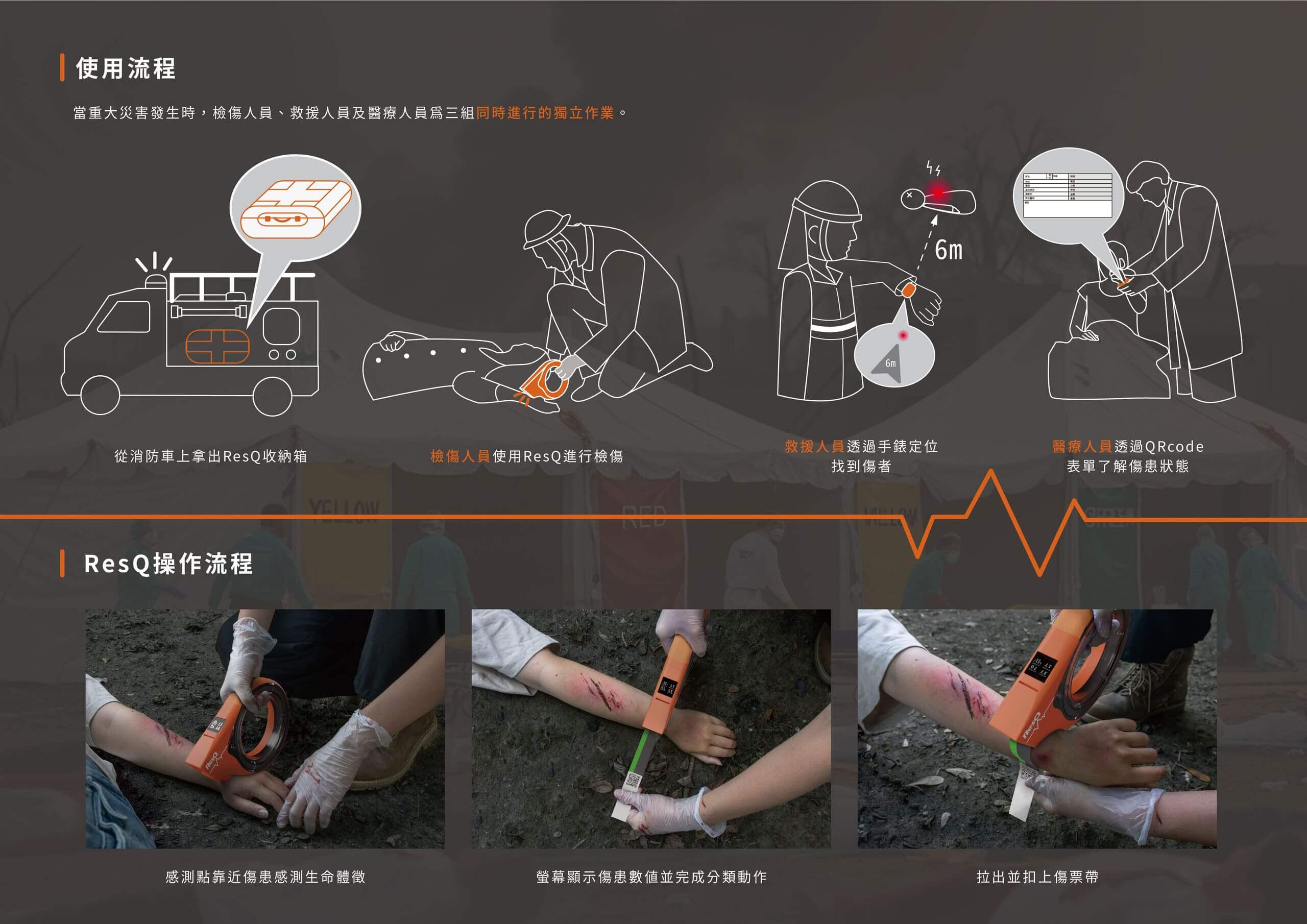 During disasters,triage ensures the most severely injured get treatment first. The ResQ Triage System helps officers make faster decisions by using optical sensors to reduce triage time and improve accuracy. Color-changing tags reflect patient condition,while built-in location tracking helps medical teams find critical patients quickly. Patient data is stored in a cloud system,enabling better info sharing between responders and hospitals. Our goal is to save more lives in limited time.