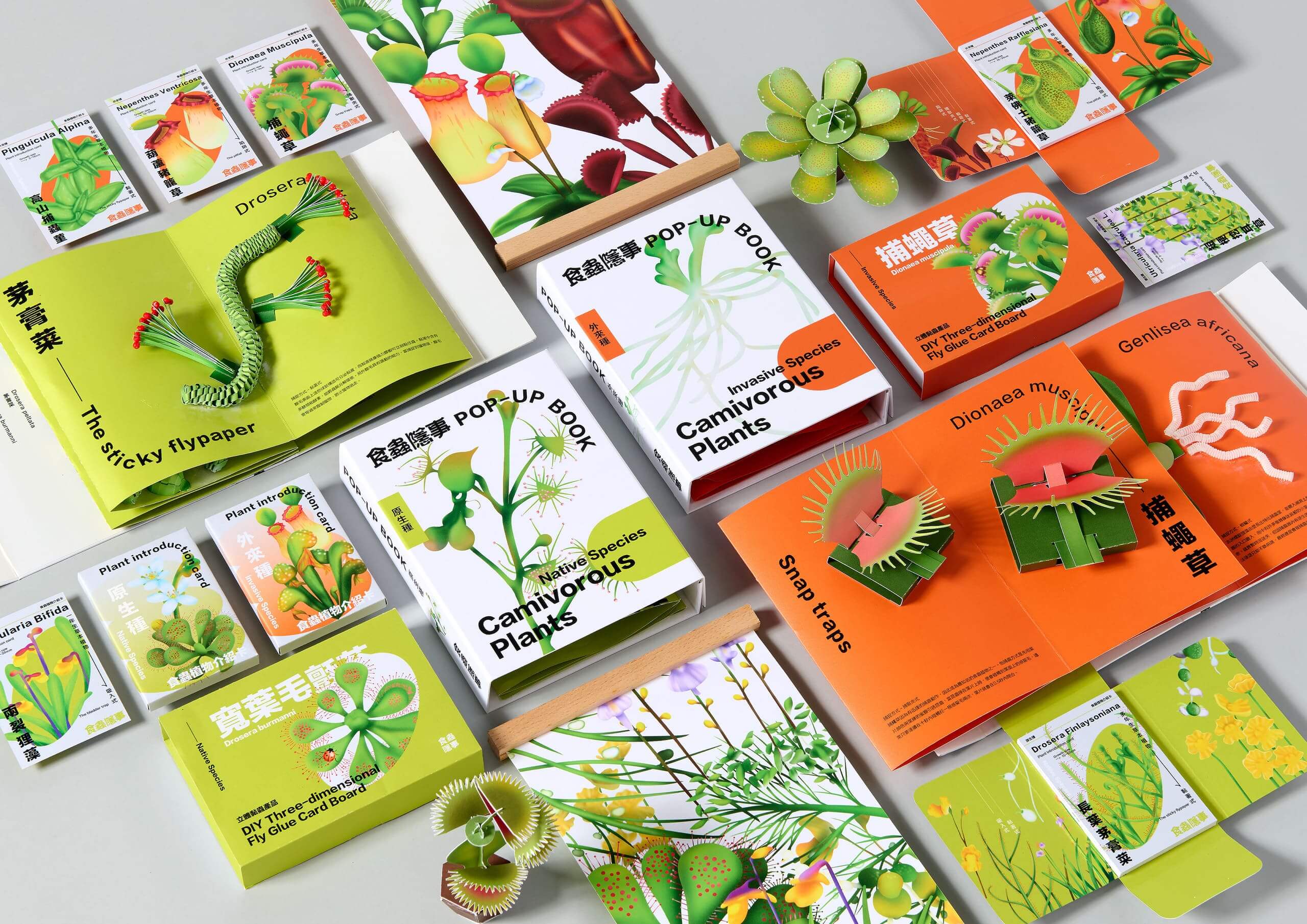 This design uses illustration to convey the unique ecological beauty of carnivorous plants, echoing modern values of sustainability and conservation. The diverse plants represent various trapping methods, highlighting their ecological secrets. Their evolved survival mechanisms reflect environmental degradation, emphasizing the need for protection. The illustrations create a vibrant world of carnivorous plants, aiming to inspire awareness of their uniqueness and the importance of conservation.