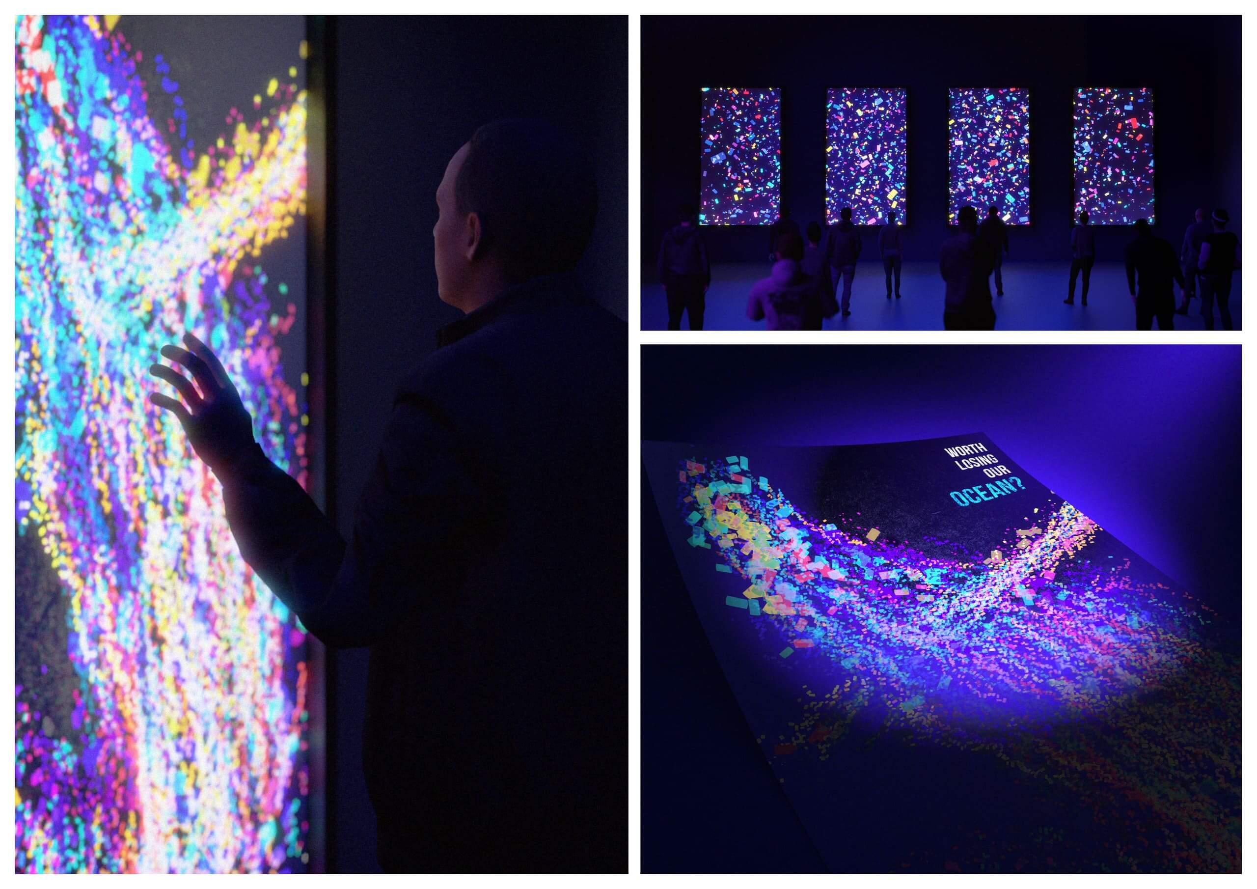 Microplastics silently infiltrate oceans, threatening marine life. This interactive LED installation transforms the hidden crisis into community experience. As people engage, plastic particles merge into marine creatures, shifting from vibrant fluorescent to stark white contamination scenes. This public art creates collective awareness, challenging viewers to confront plastic pollution and inspire ocean protection.