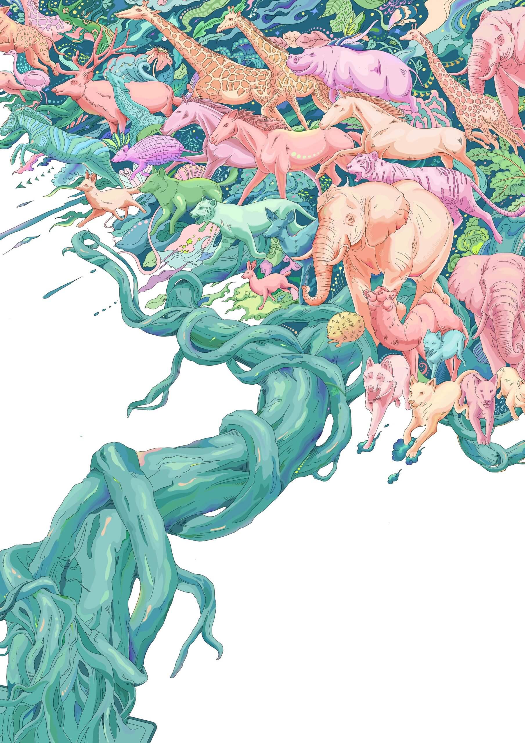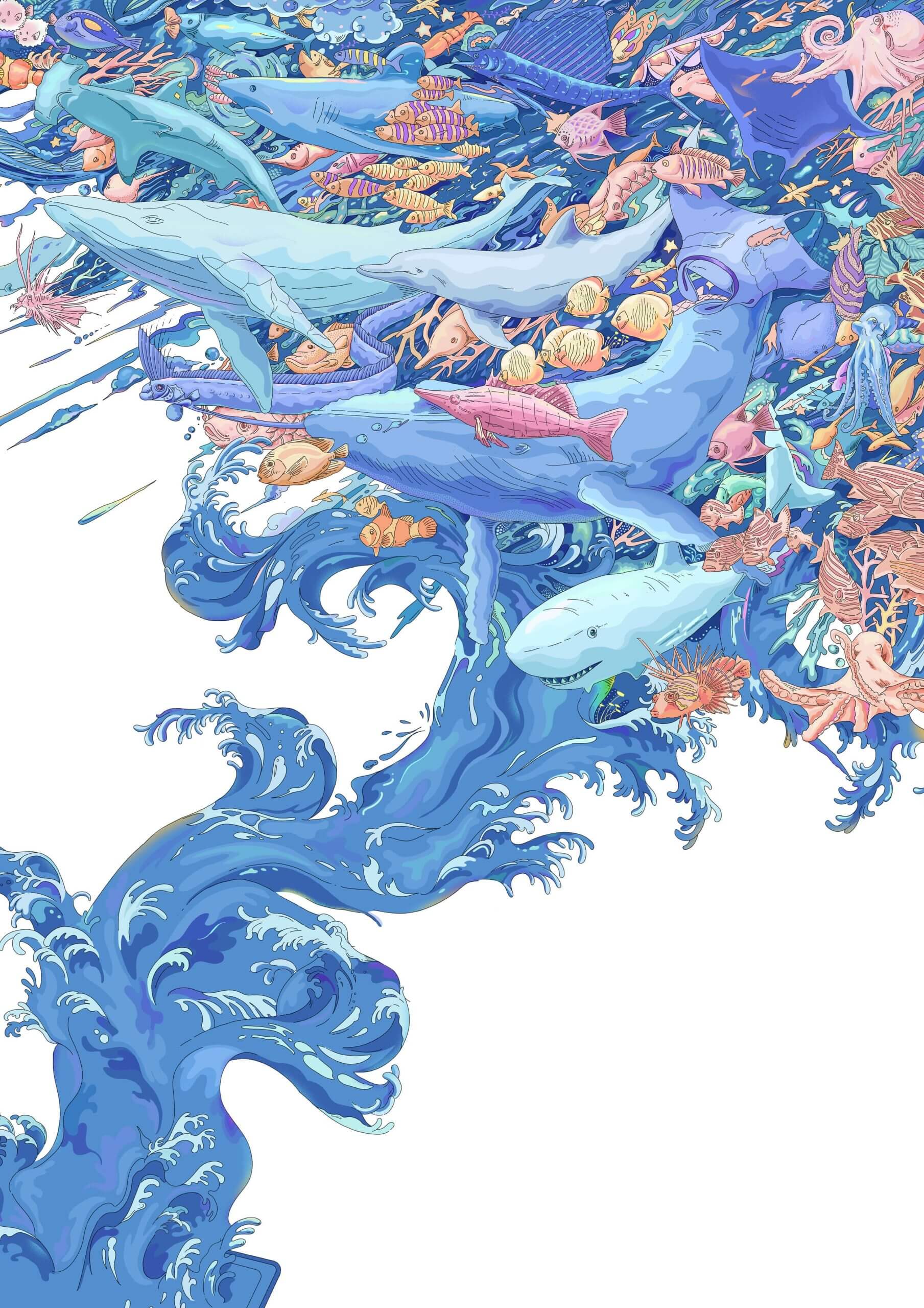 Inspired by animals in the sky, ocean and land, each illustration shows the biodiversity in different ecosystems and conveys the vitality and creativity of life. By displaying animals in different ecosystems, the persistence and diversity of nature’s vitality are emphasized. It symbolizes inspiration and the endless life of nature.